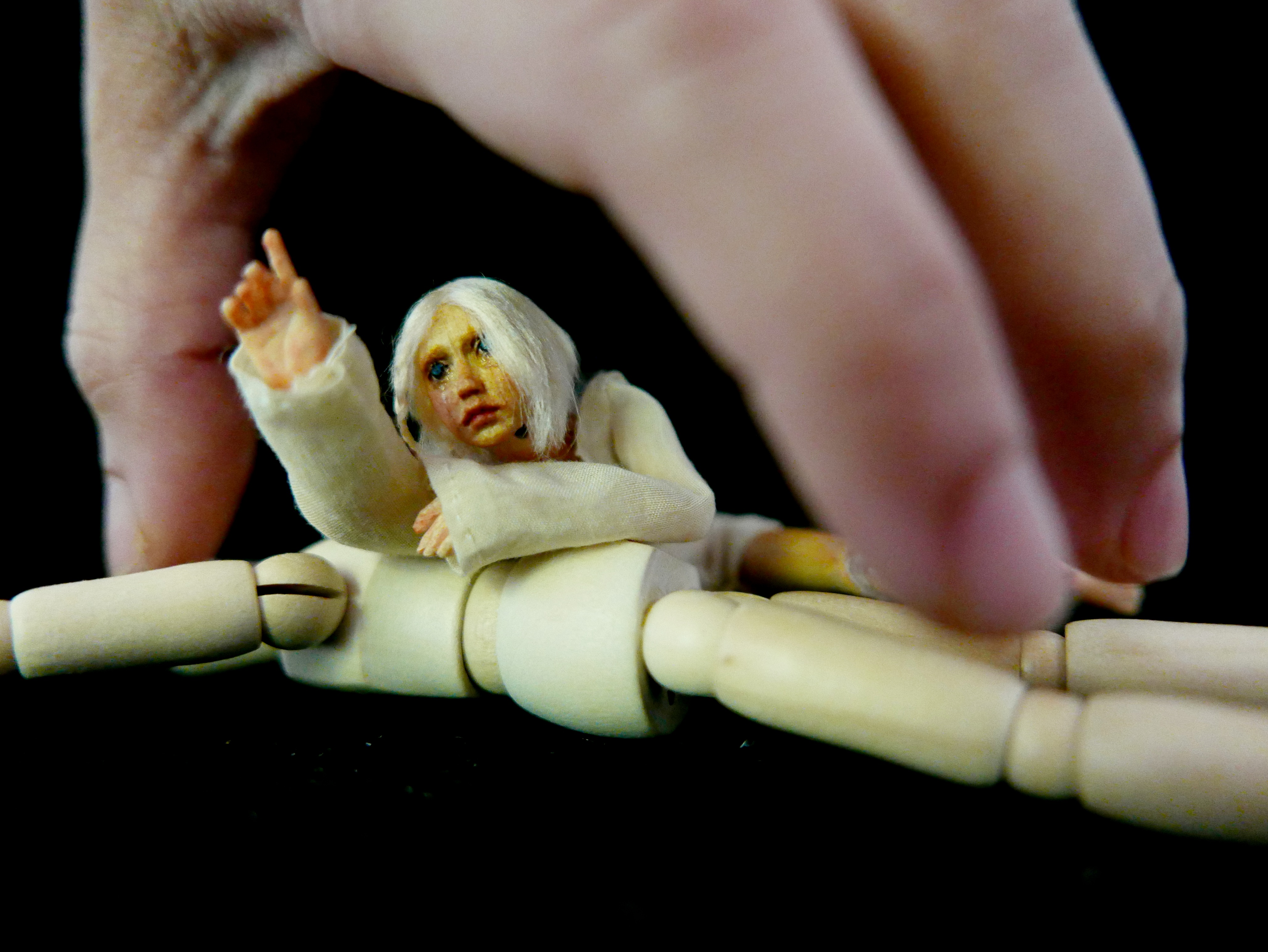 Resin copy of my wooden micro wooden bjd. It is an inch tall.