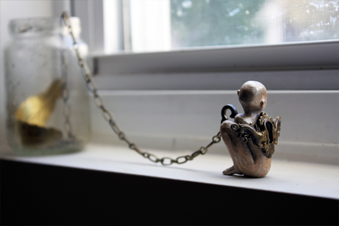 Original miniature mixed media sculpture.